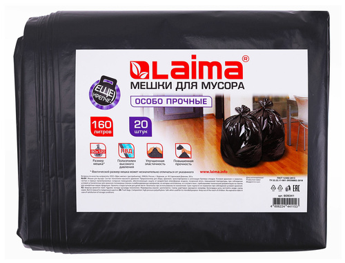 160 л, 90х120 см, 65 мкм, черные, 20 шт/рул