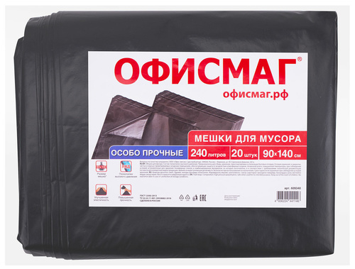 240 л, 86х125 см, 20 мкм, черные, 10 шт/рул