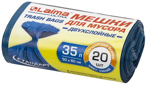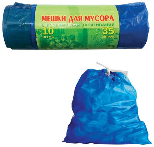 35 л, 50х58 см, 25 мкм, синие, 10 шт/рул