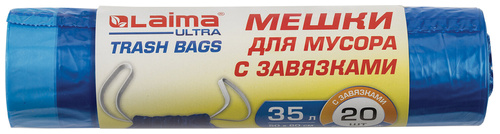 35 л, 50х60 см, с завязками,голубые, 15 шт/рул