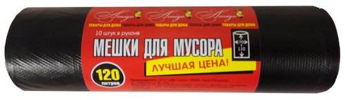 120 л, 70х110 см, 20 мкм, черные, 10 шт/рул