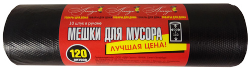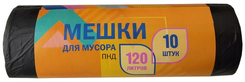 120 л, 70х110 см, 15 мкм, 10 шт/рул, черные