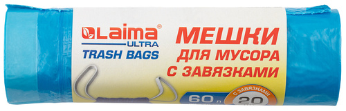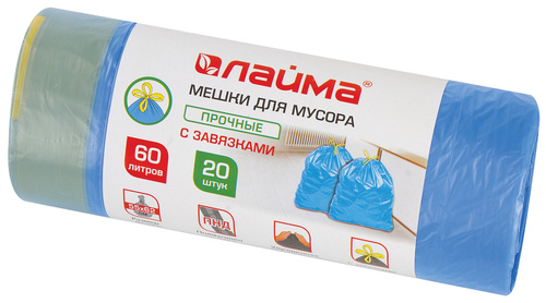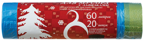 60 л, 58х65 см, 20 шт/рул, голубые, с завязками