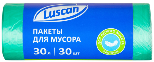 30 л, 50х60 см, 10 мкм, зеленые, 30 шт/рул