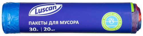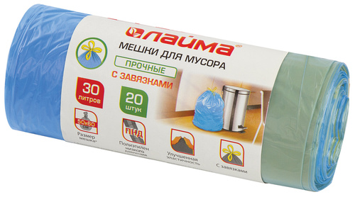 30 л, 50х60 см, 25 мкм, синие, 20 шт/рул, с завязками