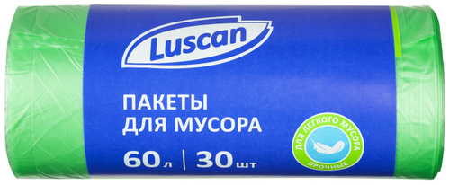 60 л, 58х68 см, 10 мкм, зеленые, 30 шт/рул