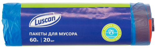60 л, 60х70 см, 14 мкм, 20 шт/уп, с затягивающейя тесьмой, синие