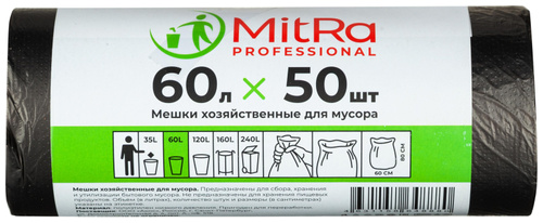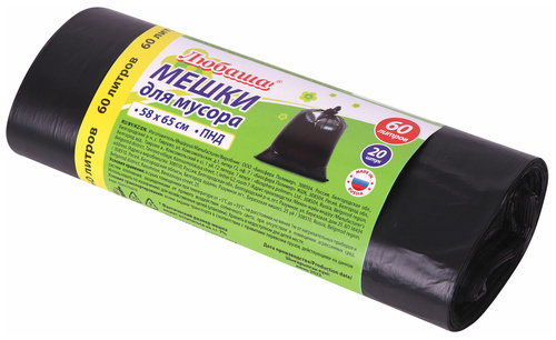 60 л, 60х70 см, 10 мкм, черные, 20 шт/рул