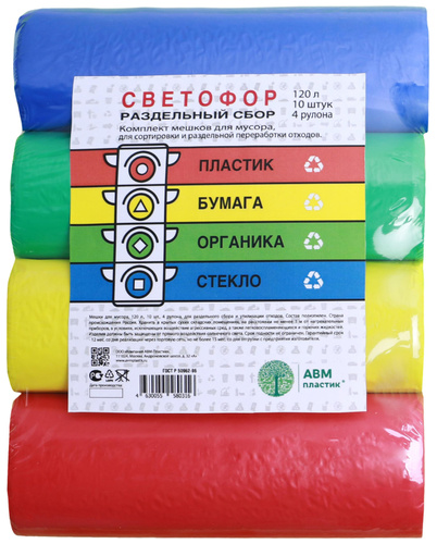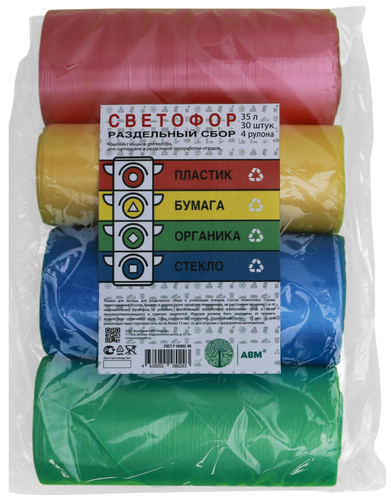 Пакеты для мусора ПНД СВЕТОФОР для раздельного сбора мусора