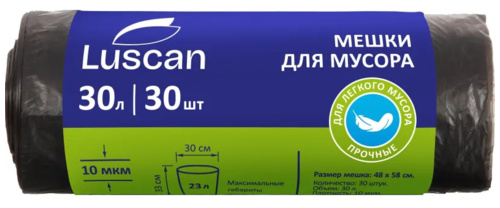 30 л, 48х55 см, 6 мкм, 30 шт/рул, черные