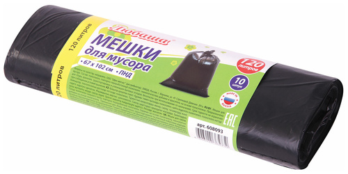 120 л, 67х100 см, 20 мкм, черные, 10 шт/рул