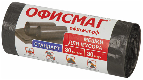 30 л, 50х60 см, 10 мкм, черные, 30 шт/рул
