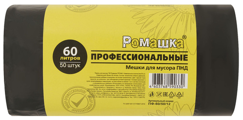60 л, 58х65 см, 6 мкм, 50 шт/рул, черные