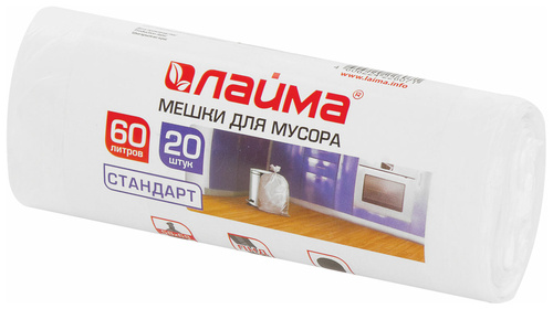 60 л, 58х68 см, 8 мкм, 20 шт/рул, черные