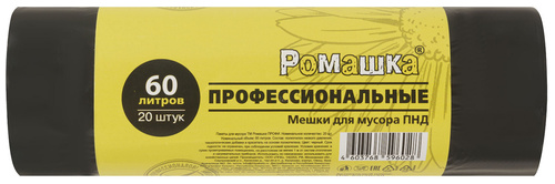 60 л, 60х70 см, 15 мкм, черные, 20 шт/рул