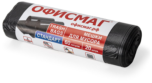 60 л, 57х65 см, 8 мкм, черные, 20 шт/рул