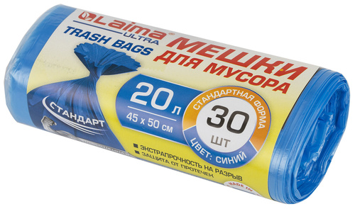 120 л, 70х110 см, 18 мкм, синие, 20 шт/рул