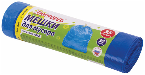 35 л, 50х60 см, 10 мкм, синие, 30 шт/рул