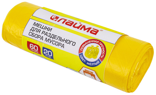 120 л, 70х110 см, 11 мкм, желтые, 10 шт/рул