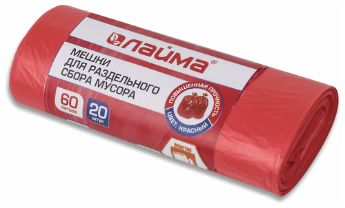 60 л, 58х68 см, 10 мкм, ассорти, 20 шт/рул, 4 рул/уп
