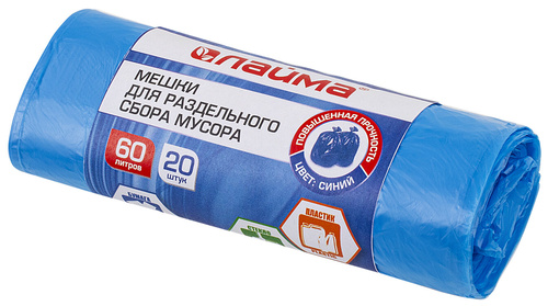 60 л, 60х70 см, 13 мкм, 20 шт/рул, синие