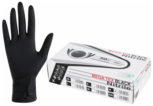 Перчатки нитриловые сверхпрочные с текстурой SFM Mega Tex Black