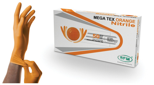 Перчатки нитриловые сверхпрочные с текстурой SFM Mega Tex Orange