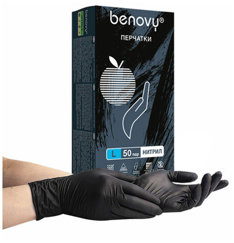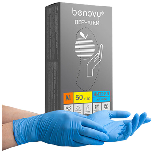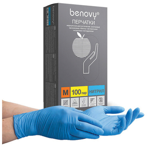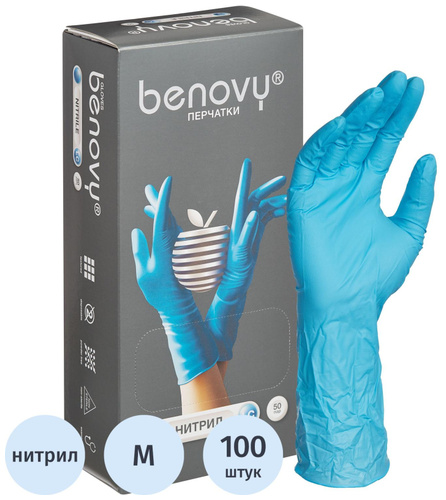 Перчатки нитриловые BENOVY неопудренные, нестерильные