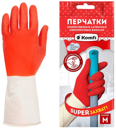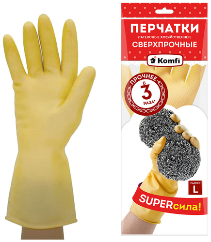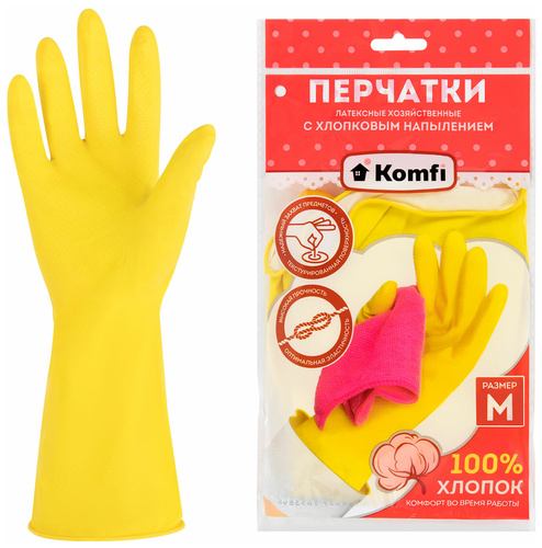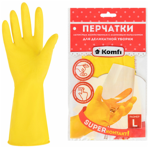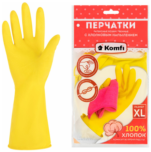 Перчатки латексные KOMFI с хлопчатобумажным напылением