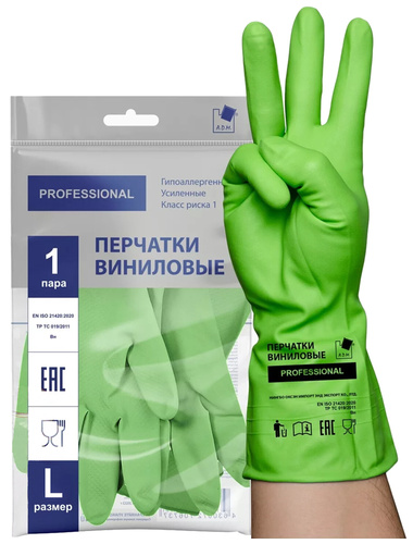 Перчатки виниловые ADM ТР ТС, PROFESSIONAL гипоаллергенные