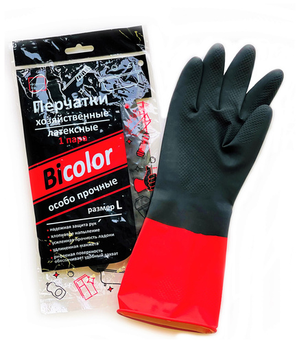 Перчатки латексные BICOLOR, хлопчатобумажное напыление