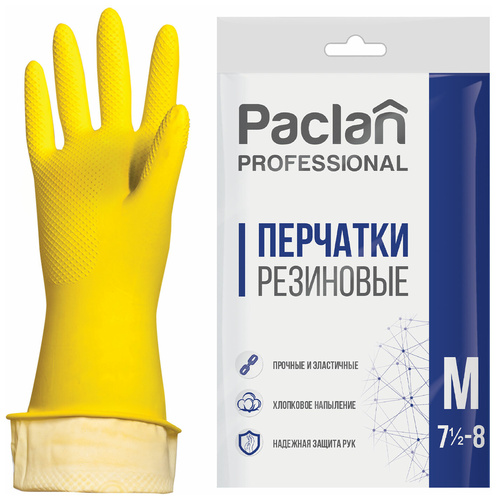 Перчатки латексные PACLAN Professional, хлопчатобумажное напыление