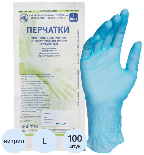 Перчатки нитриловые Русмедупак неопудренные, стерильные