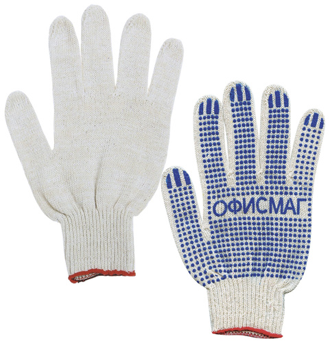 Перчатки хлопчатобумажные ОФИСМАГ ЛЮКС ПВХ точка