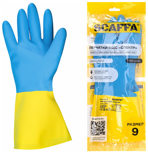 Перчатки латексно-неопреновые SCAFFA Спектр КЩС-1, хлопчатобумажное напыление