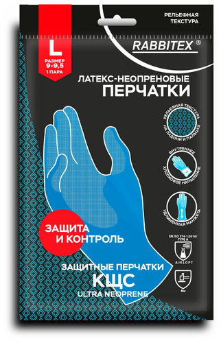 Перчатки латексно-неопреновые КЩС RABBITEX ULTRA NEOPRENE химически устойчивые