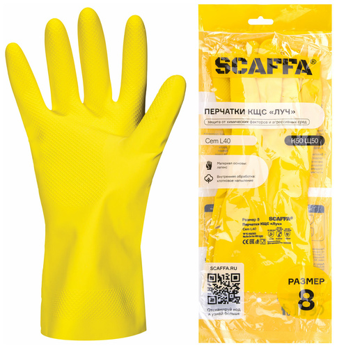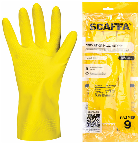Перчатки латексные SCAFFA Луч, КЩС-2, хлопчатобумажное напыление