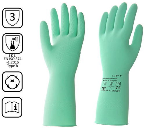 Перчатки латексные КЩС , HQ Profiline, сверхпрочные, плотные, хлопковое напыление