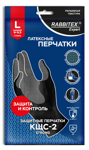 Перчатки латексные КЩС-2 RABBITEX EXPERT STRONG химически устойчивые