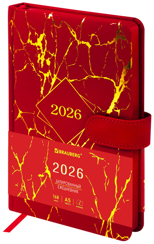 Ежедневник BRAUBERG Goldy с магнитной застежкой, цветной срез на 2026 год