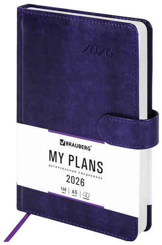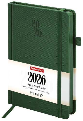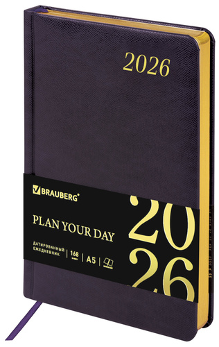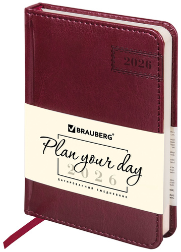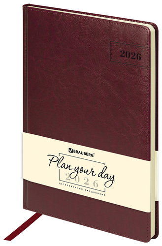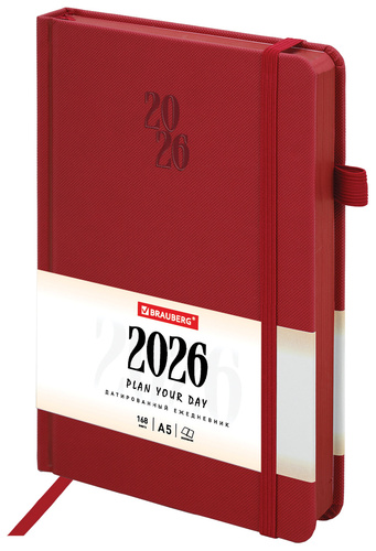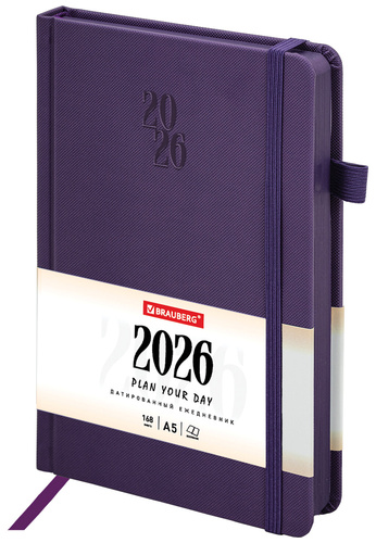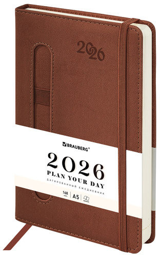 Ежедневник BRAUBERG Plain на резинке с держателем для ручки на 2026 год