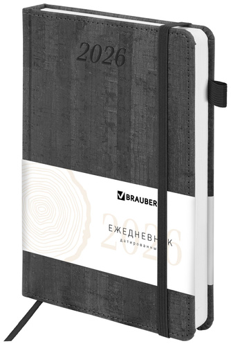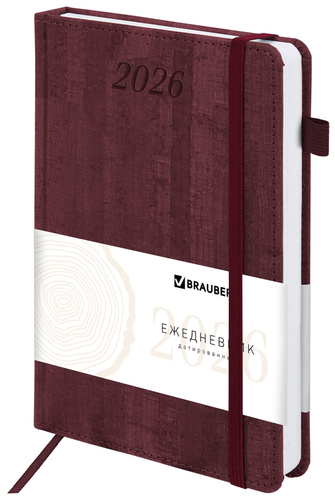 Ежедневник BRAUBERG Wood на резинке с держателем для ручки на 2026 год