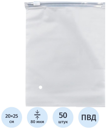 прозрачный, 60 мкм, 200х250 мм, 50 шт/уп