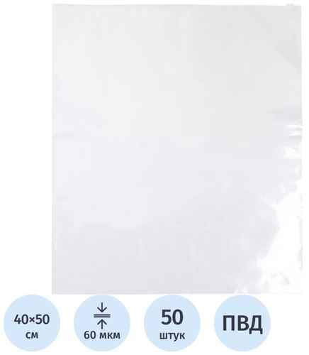 прозрачный, 60 мкм, 400х500 мм, 50 шт/уп