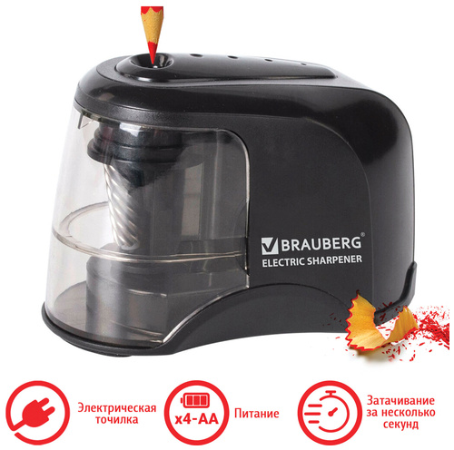 Точилка электрическая BRAUBERG DOUBLE BLADE BLACK