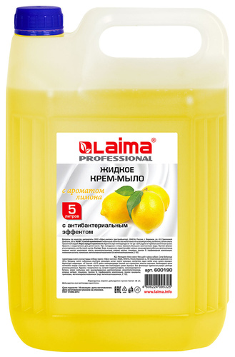 Мыло-крем жидкое ЛАЙМА PROFESSIONAL "Лимон", с антибактериальным эффектом, 600190
