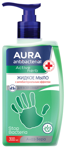 Мыло жидкое антибактериальное для всей семьи AURA АНТИБАКТЕРИАЛЬНАЯ Ромашка