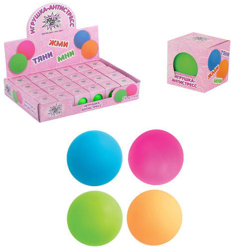 "ШАР", 7 см, ассорти 4 цвета, дисплей, 12 шт/уп