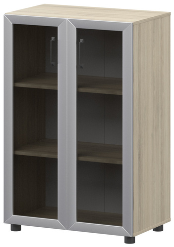Стеллаж средний закрытый со стекл.фасадами в алюм.раме К-933,К-945,КФ-945