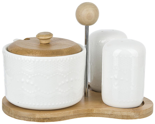 Набор для специй Nouvelle Daily 0190238 4 предмета (солонка, перечница, емкость для зубочисток, подставка)